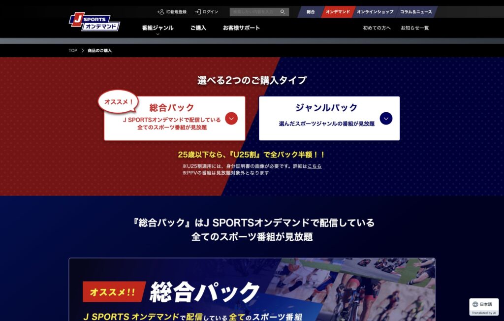 J SPORTSオンデマンドは総合パックとジャンルパックで見れるものが違う