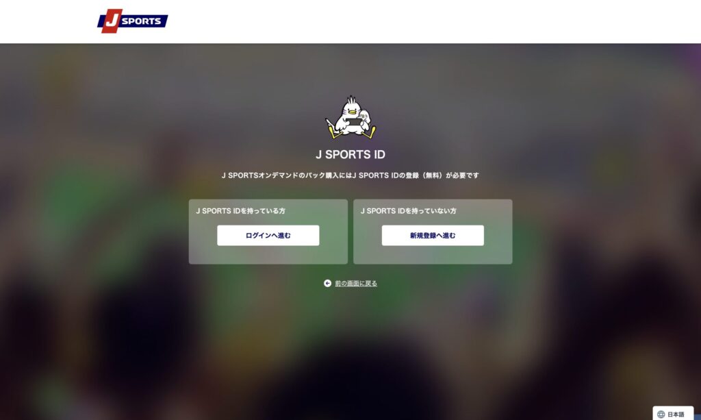 - J SPORTS IDを持っている方はログイン・なければ新規登録