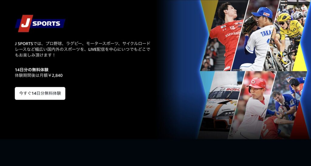 AmazonのJ SPORTSチャンネルには、14日間の無料体験があります!