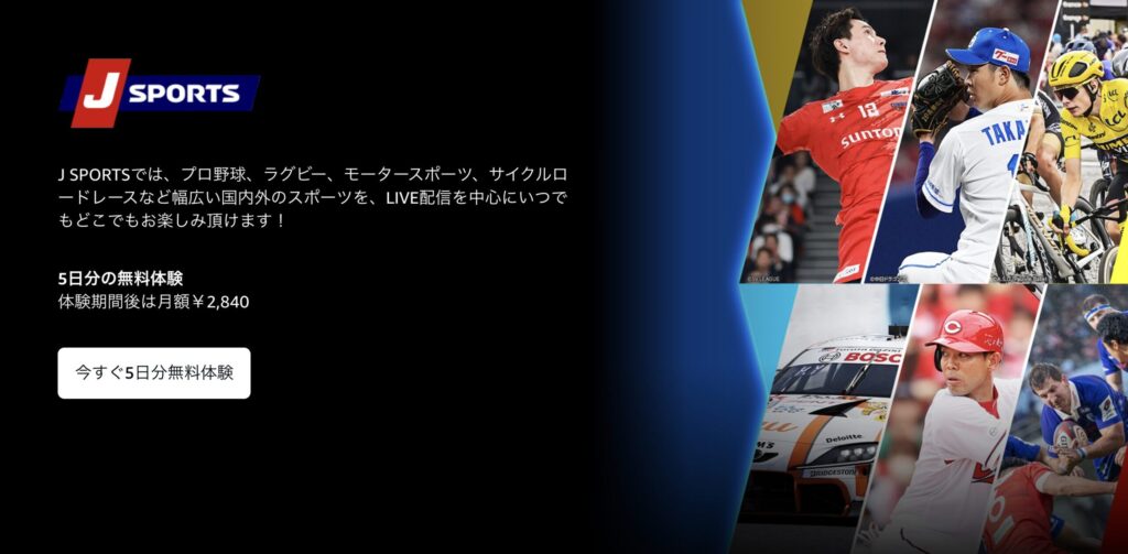 しかし、Amazonプライムビデオの「J SPORTSチャンネル」が提供する無料体験を利用すれば、5日間は無料で楽しめます。