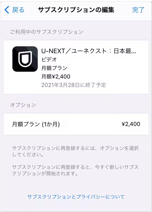 ※ [サブスクリプションをキャンセルする]が表示されている場合は解約出来ていません。通信状態を確認し再度やり直してください。