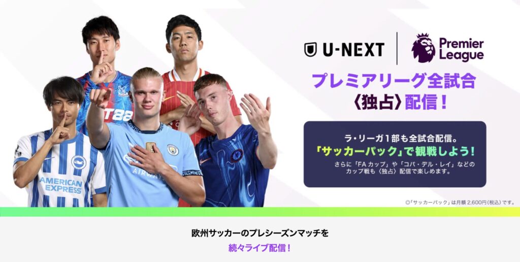 プレミアリーグを全試合で観たいのであれば、U-NEXTサッカーパックが唯一の選択肢です。