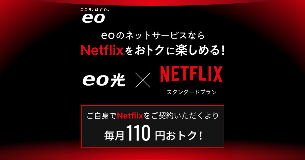 eo光シンプルプラン × NETFLIXのセットプランでは、eo光シンプルプランとNetflixをそれぞれ契約するよりも、毎月110円お得になります。